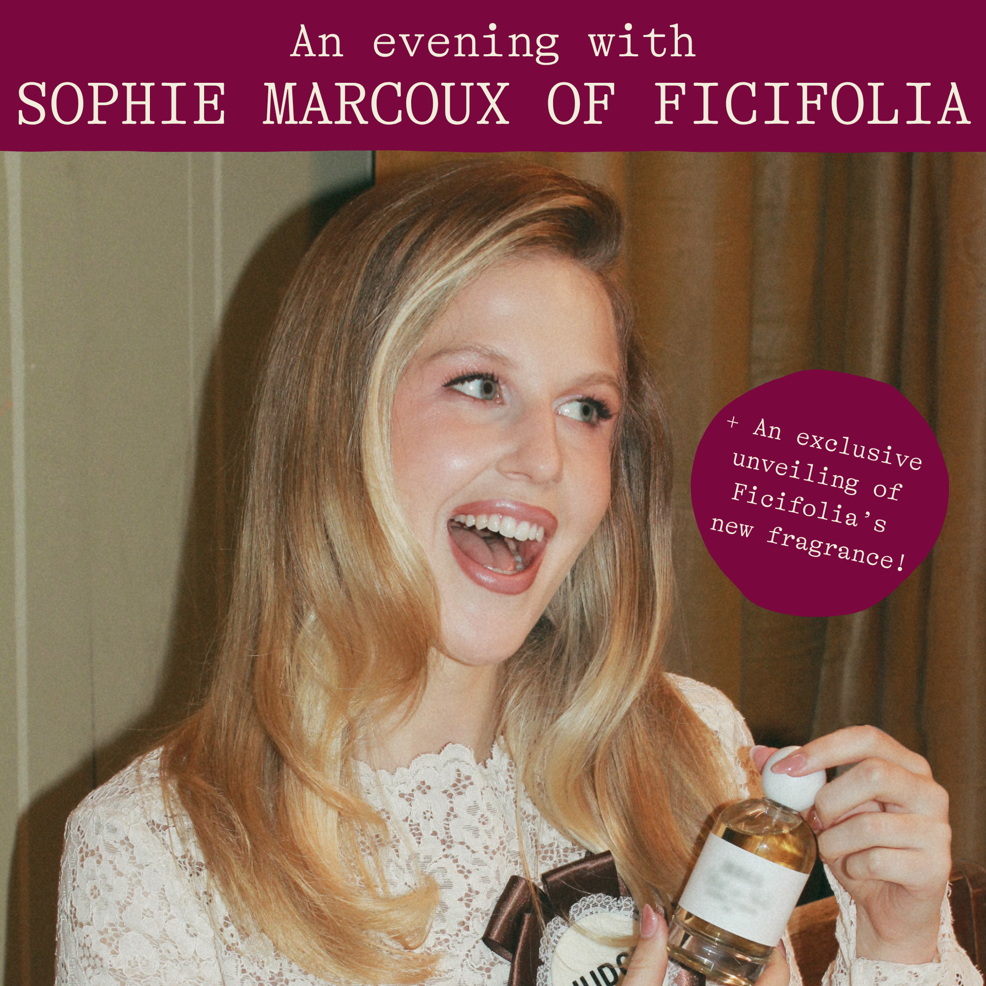 During the course of the evening, Sophie will take attendees through each one of the Ficifolia fragrances, chatting about everything from inspo to execution. She’ll be revealing fun facts and never-heard-before insider info on her brand, and, of course, will be available to answer any questions attendees might have about her creations.
