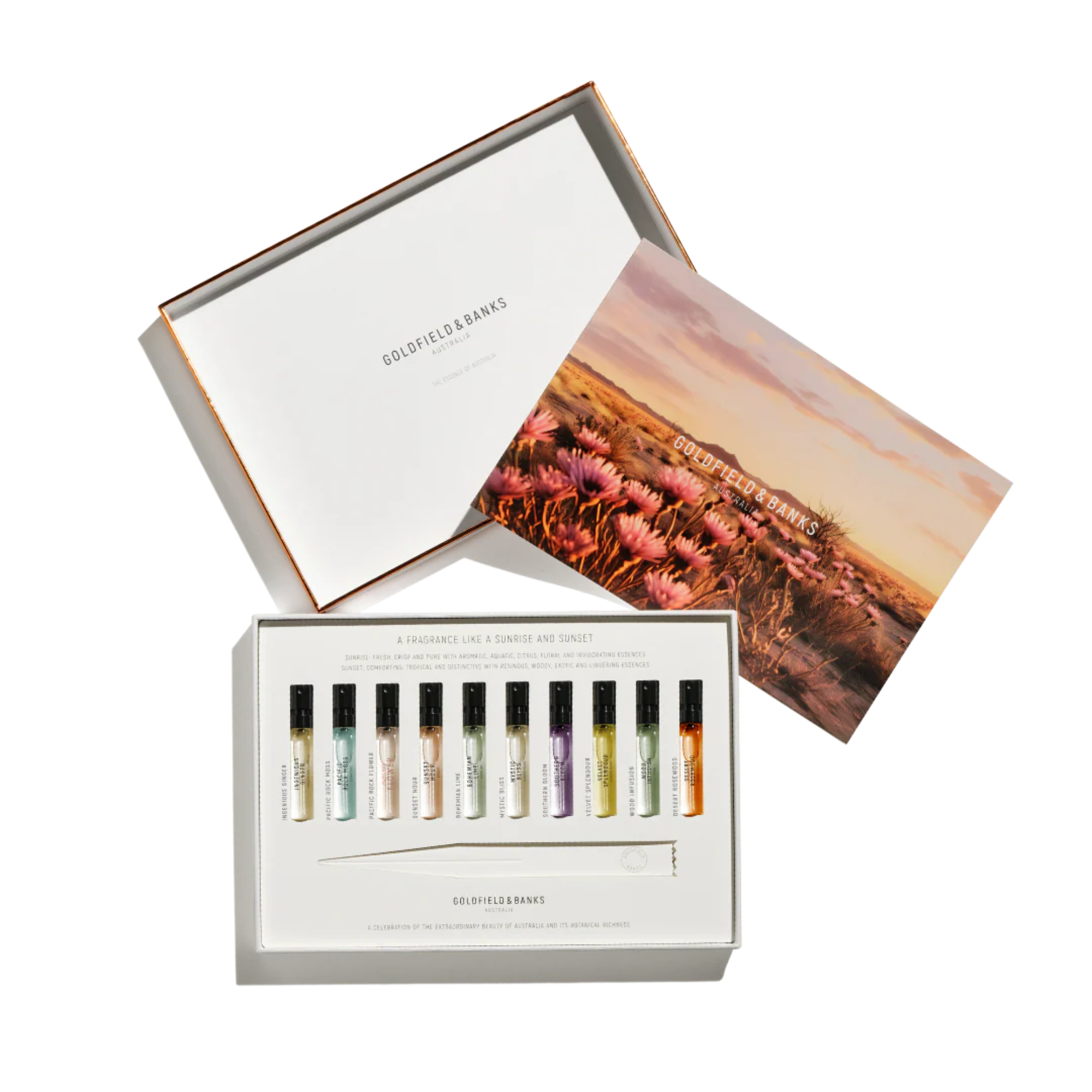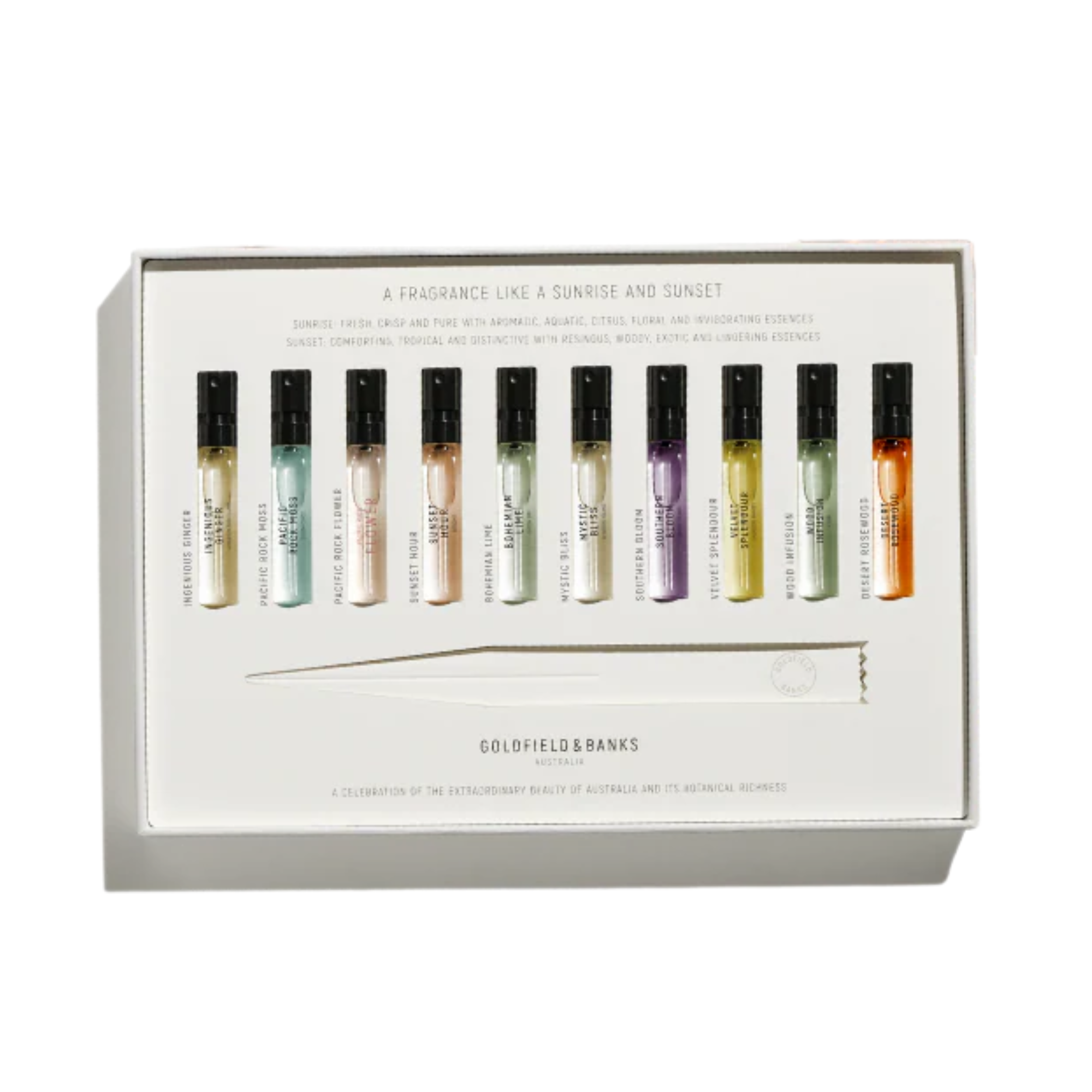 Host your very own Goldfield & Banks Perfume expert class with this luxury Discovery Sample Collection. Enchant your senses and spoil yourself or your loved ones with 10 x 2ml perfume sprays, spray cards and an instructional compendium.