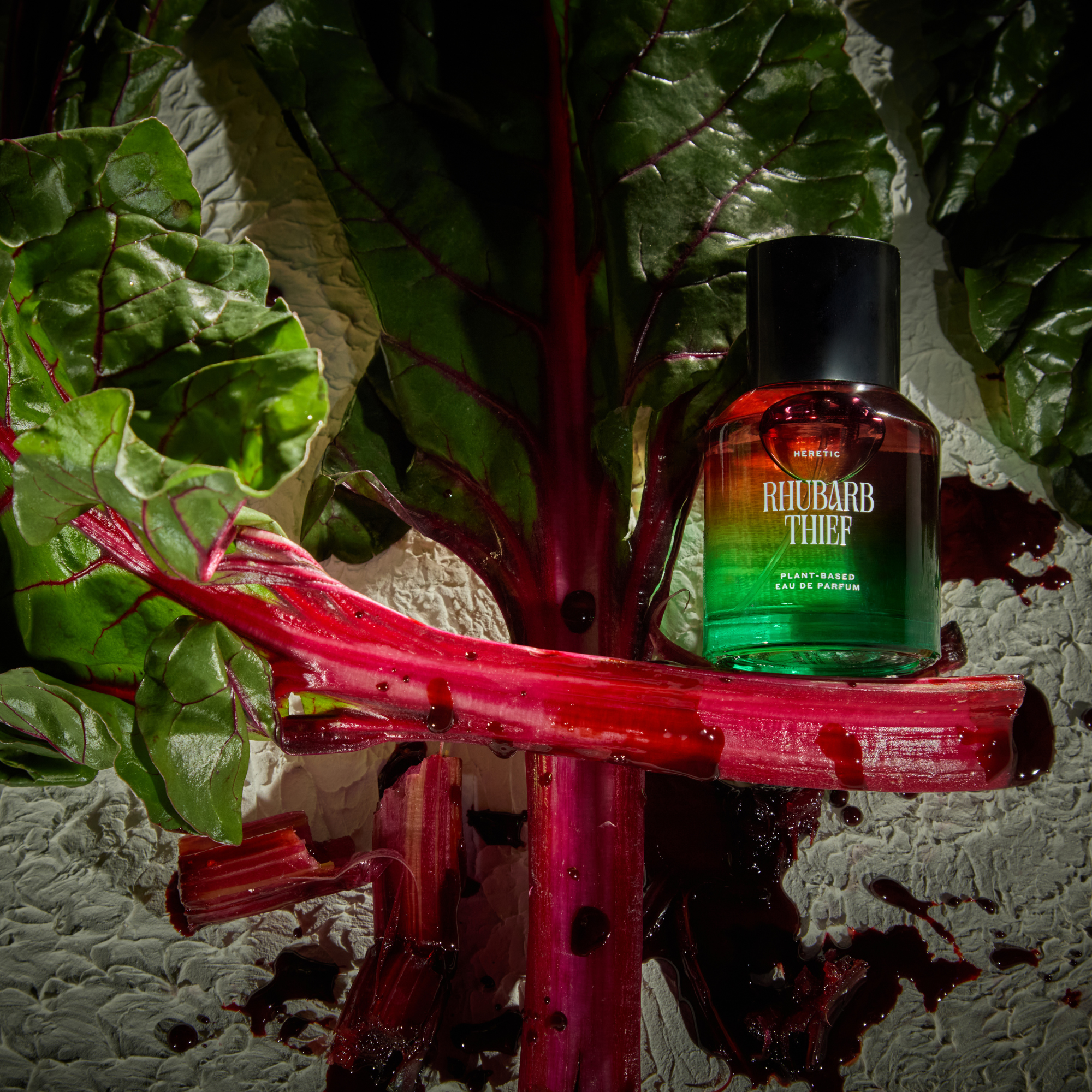 The incredible visuals and campaign aside… we think this fragrance is a masterpiece. It’s fresh and energetic, but still maintains that core Heretic DNA of grounded, sexy earthiness in the base. If you were a fan of the original Dirty Grapefruit by Heretic, Rhubarb Thief is like the earthier, slightly more complex version. Because of its brightness and vibrancy, this fragrance has a sense of fun and cheekiness about it – like the olfactory version of a wink.