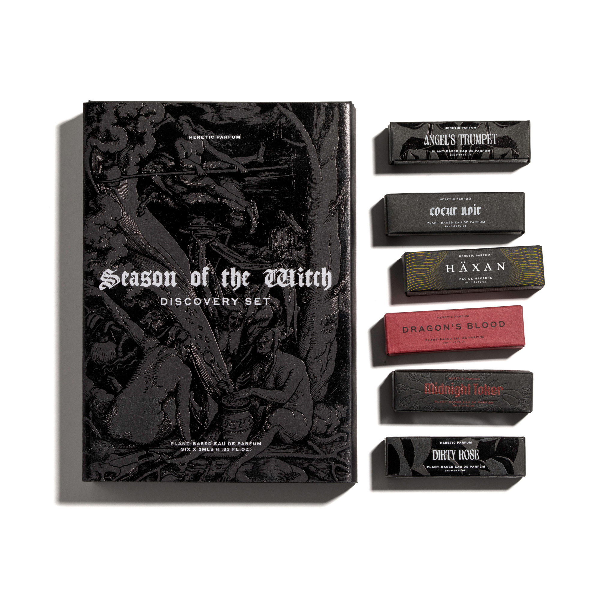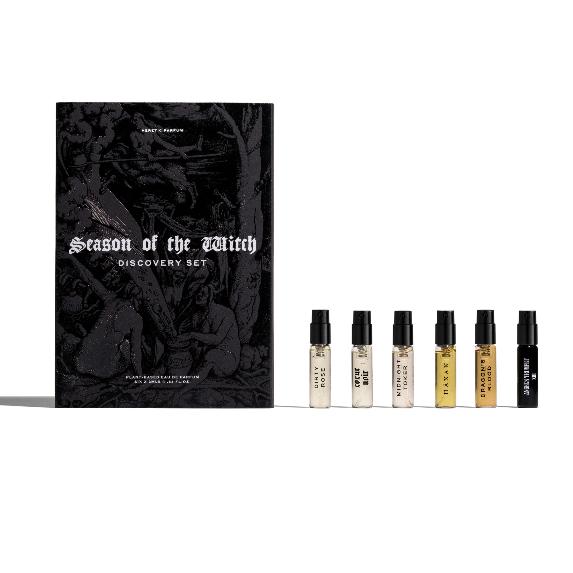 One of the most popular Discovery Sets ever stocked at Lore, the Season of The Witch pack is a curated selection of Heretic Parfum’s most mystical, magical, bewitching and beguiling fragrances. Beyond their concept, many of the ingredients in these fragrances have longstanding spiritual, cultural and historical connections to witchcraft, magic and devotional practices (they really do attention to detail well!). With florals white and red, to glowing resins and smoky woods, this set has great variety for lovers of anything and everything witchy!